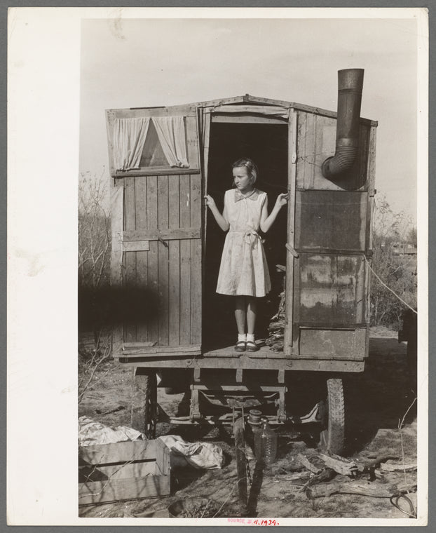 Daughter of migrant in doorway of trailer, Sebastian, Texas