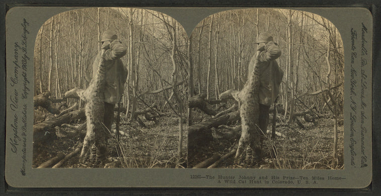 The hunter Johnny and his prize - ten miles home. A wild cat hunt in Colorado, U.S.A.